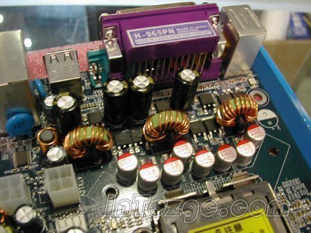 顶星H-965PN主板采用深蓝色PCB大板设计,配备最新的C2版的Intel P965北桥搭配Intel新一代ICH8南桥,让性能更加稳定,支持Intel Core 2 Quadro四核处理器,以及其它Intel LGA 775接口处理器,包括Conroe双核、Pentium D系列、Celeron D系列处理器等。