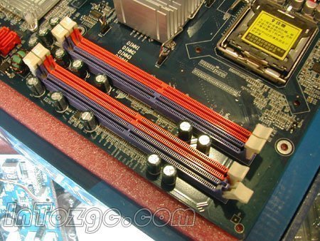 主板提供了4个DIMM内存插槽,最可支持高8GB容量的双通道DDR2 800/667/533内存,完全满足了各个阶层玩家的需要。另外,主板的内存和芯片组各设有一个独立开关电源,包括一颗电感线圈,三颗MOS管,为内存提供足额、稳定、纯净的优质电能,确保稳定运行。