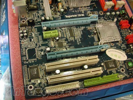 主板提供了1条PCI-E 16X插槽和1条PCI-E 4X,3条PCI插槽,值得一提的是,支持NV SLI双卡互连技术和ATI Cross Fire交火技术。