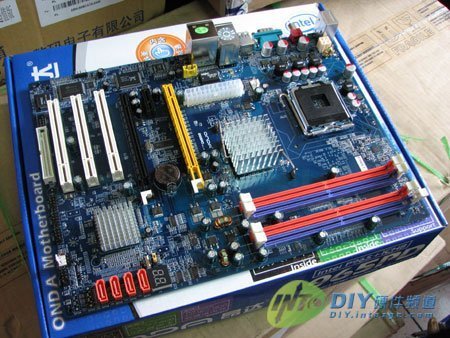 昂达965PD v2.00采用大板设计,经典的蓝色PCB,前端总线支持800/1066MHz,可以上奔腾D系列到最新的ConroeE6000系列双核处理器。
