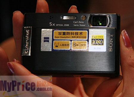 索尼T100提供了银色、黑色和红色三种机身颜色可供选择。其外观尺寸为91.8×59.2×22.3 mm,拥有全球最薄5倍光变DC的称号。该机还采用了3英寸23万像素的液晶屏,显示效果清晰细腻。T100使用了新的9点自动对焦系统,并引入了脸部识别技术,一次识别可以识别8个人脸,并可以进行脸部快速追踪对焦、脸部优先曝光等等。T100还加入了对HDTV高清电视机的支持,通过HD线缆或CSS-HD1底座和高清电视机连接,可以播放T100上拍摄的照片、短片和串片秀,其最大可以输出1080P的信号。光学防抖功能更保证了拍摄的稳定。