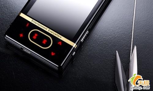蓝魔RM650外观设计典型的巧克力风情,触摸按键,屏幕宽大,机身超薄,可以适合现在消费者操作简便的要求。RM650的屏幕为2.4英寸,QVGA分辨率以及26万色,总体规格平平,屏幕下方的一小块面积不大的区域集成了6枚按键,略显局促,不过只要稍加熟悉,就不会出现误操作的现象。此外,面板上所有的按键均为人体触摸式按键,只有手指的触压才会使播放器有反应,一般的硬物是不会触动按键的。其他值得称道的地方还包括能够支持24F/S QVGA画幅的视频播放能力以及具备了全面而强大的常规功能,不过NES游戏,OGG音频格式支持,收音录音,图片电子书浏览等等一应俱全偏离了我们功能简单的要求。看在价格的份上,这些功能就简直就是大赠送的吧!