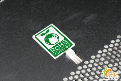 打开机箱侧面板我们发现了这个标识:RoHS,RoHS是由欧盟立法制定的一项强制性标准,它的全称是《关于限制在电子电器设备中使用某些有害成分的指令》(Restriction of Hazardous Substances)。该标准将于2006年7月1日开始正式实施,主要用于规范电子电气产品的材料及工艺标准,使之更加有利于人体健康及环境保护。该标准的目的在于消除电机电子产品中的铅、汞、镉、六价铬、多溴联苯和多溴联苯醚共6项物质,并重点规定了铅的含量不能超过1%。