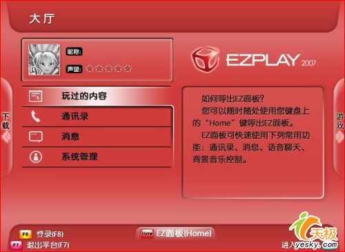 联合盛大集团推出的EZPLAY娱乐空间。包括下载、媒体、游戏等四个大厅,将原本零散复杂的娱乐内容整合到统一的平台上,图形化的界面相当直观,还可以外接遥控器和手柄,使得同方COCO的家电化特征更加明显,躺在沙发上即能轻松操作,这样的感受对于普通消费者更多了一些购买的理由。