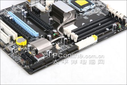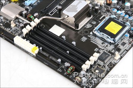 内存插槽方面,主板提供了四个插槽,支持DDRII 533/667/800双通道内存,最大可支持8GB。此外在内存供电方面采用特别加强的DDR2插槽两相供电设计,为DDR2优异的超频性能提供了坚实的硬件基础,CPU频率提升的同时,内存频率也得到相应提升。