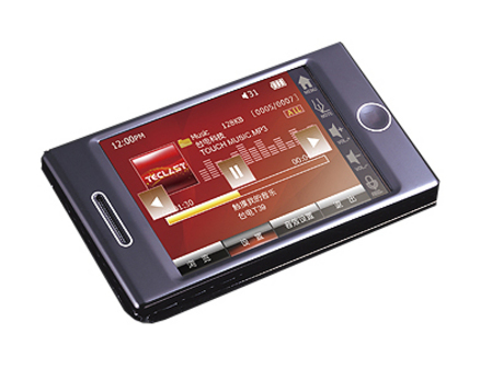 台电T39采用韩国Telechips TCC8200主控芯片与英国欧胜WM8978G DAC芯片组成的第四代双核心架构。配备2.6英寸26万色TFT触摸屏幕,分辨率为QVGA(320×240像素),支持30帧/秒的AVI、WMV视频格式的播放,支持MP3、WMA、FLAC和WAV格式的音频文件。台电T39机身尺寸仅为80×47×11.6mm,底壳采用镜面抛光设计,面板也经IMD工艺处理显出高光效果。屏幕边栏带有ICON快捷操控区,有常用的返回主菜单、手写便签、音量增减和录音快捷按钮,配合全屏触摸操作界面,在T39上直接用手指或触控笔选取各种功能直观而便利。
