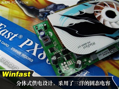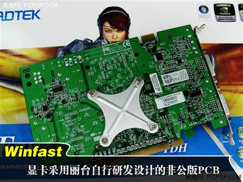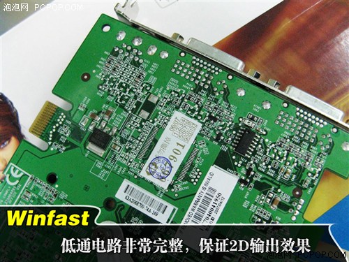 凭借着丽台超强的设计实力,丽台PX8600GT TDH采用了自行研发设计的6层非公版PCB,由于PCB设计上布局的优秀以及高品质电感的搭配,该卡供电部分看似简陋,但实际上一点也不算缩水。而且像丽台这样的国际大厂也不会生产出缩水产品搬着石头砸自己的脚。
