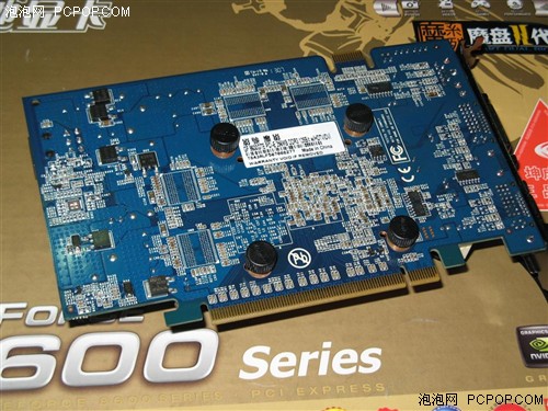 另外我们可以注意到,PCB背面预留了四颗显存空焊位,这就意味着影驰还会有512MB的版本(影驰8600GTS/GT 512MB版本日前已经正式发布),用以提高显卡在高负载情况下的性能表现。而P401/402公版最高只能容纳4颗显存,容量最大256MB,性能无法取得突破!