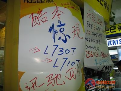 在迅驰4火热大江南北之时,不少消费者为其高价钱放弃选择迅驰4的机会,今日小编在神舟专柜看到型号为L710T的神舟笔记本,仅售7999元。