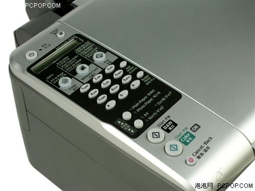 爱普生Stylus CX6900F支持打印、复印、扫描、传真四种功能,在显示屏的下面是三个功能主键第一个是复印按键,可以选择不同的复印品质;中间为存储卡按键,用户可以通过插卡打印;右边为复印按键,用户可以调节发送与接受、分辨率、还有对比度。