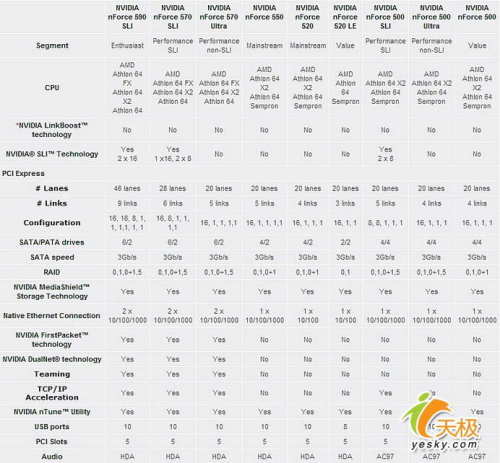 NF520LE属于NF500系列中的低端型号,相对nForce 5芯片组在功能上进行了相当的精简。首先,nForce520 LE的PCIE links的数量上精简到3条,因此该芯片组只能拆分为1条PCIE x16和2条PCIE x1的PCIE传输模式。其次在USB2.0接口和SATA2接口上也精简到8个和2个。5200LE并不整合千兆网卡控制器,仅能提供百兆网络支持。这种对扩展性进行精简的行为并不会对芯片本身的性能产生影响。无论是我们家庭用的宽带连接,还是大多数公司的内部局域网络,只要是个人用机,基本上都是百兆接入为主,而且基本上也已经足够。