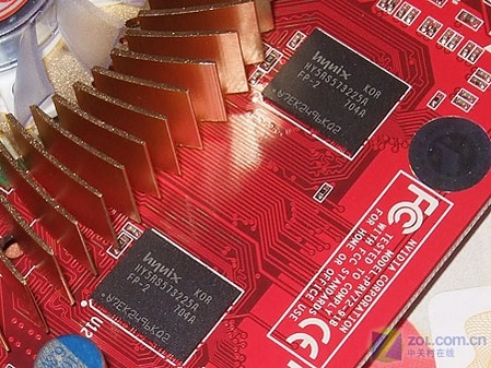 显存方面,显卡使用现代2ns GDDR3显存颗粒,默认核心/显存频率达到了450/1200MHz。