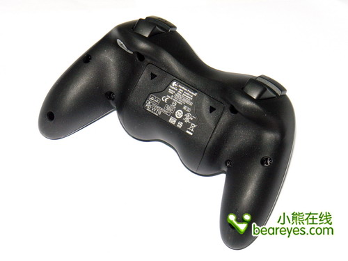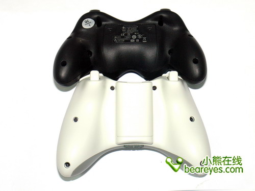 从背面来看,还是罗技的产品更加漂亮。XBOX360手柄的屁股太大了……