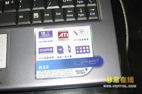配置方面,K22笔记本配备了Intel Core Duo T2250处理器(主频1.73GHz、2MB二级缓存、前端总线为533MHz)、搭载ATI RC410MB + SB450主板芯片组、512MB DDR2内存、80GB SATA 5400rpm硬盘、内置COMBO光驱、ATI Radeon Xpress 200M集成显卡(共享内存最大128MB)。