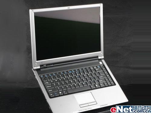 正面特写 基本配置:Intel Core2 Duo(Merom) T7100处理器,主频1.8GHz,Intel GM965芯片组,512MB DDR2内存,80GB 5400转SATA硬盘,集成Intel GMA X3100显示芯片,DVD刻录光驱,802.11n无线网卡,14.1英寸润清镜面宽屏,分辨率为1280×800,机器重量为2.4kg。