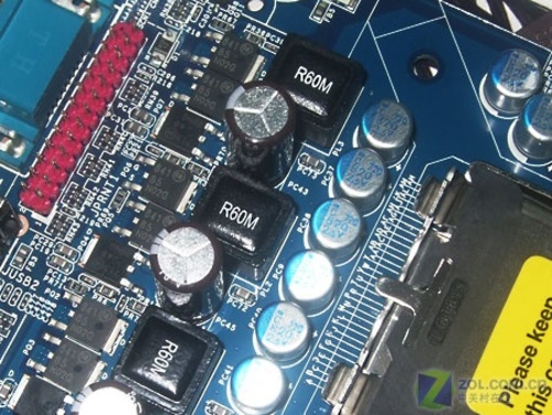 主板采用了成熟的三相供电设计,配合封闭式电感,以及大量的高品质固态电容,保证了CPU供电的稳定,也为超频提供了良好的基础。
