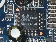 主板板载RTL8110SC千兆网卡,同时板载的ALC888芯片支持HD Audio和7.1声道输出功能。