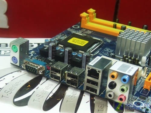 主板I/O接口提供传统的PS/2和串口,同时提供8个USB接口以及声网卡接口。