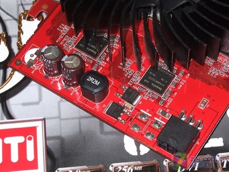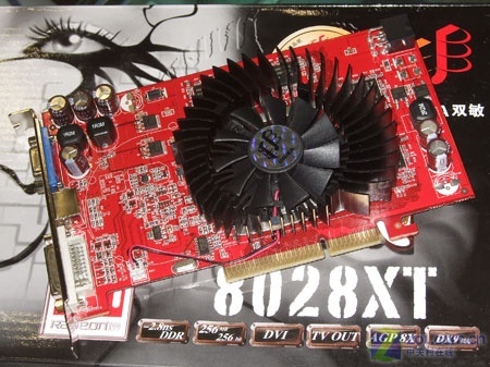 做工方面,双敏火旋风8028XT采用全尺寸的红色PCB,搭配大面积镂空磁悬浮风扇,满足X800XT核心的散热要求。供电方面,显卡采用了三相供电设计,用料上采用电解电容配合1ROM电感与2R2M电感,加上外接6Pin电源接口,降低因AGP插槽供电不足而造成的兼容性问题。