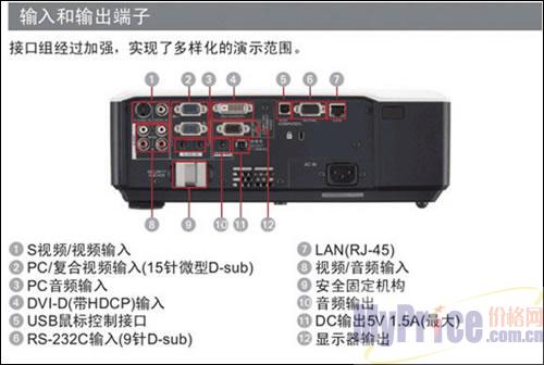 此外,三菱LX-610投影机还具有的PJLink网络控制功能,从而可实现和其他投影机不分品牌和型号都可以连接在同一个局域网中,并对其进行监视和控制。(PJLink标准由日本商务机械信息系统产业联盟(JBMlA)制定),LX-610具有丰富的接口,包括2路RGB输入、1路DVI-D输入、1路RGB输出,还有RJ45和RS232控制端口。
