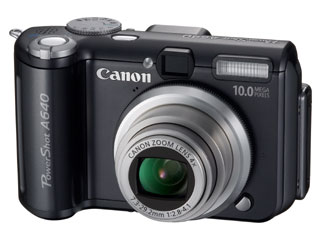 佳能A640采用一块1/1.8英寸的1000万像素CCD,最大分辨率为3648 x 2736。使用焦距等效于传统35mm相机的35-140mm、最大光圈F2.8-F4.1的4倍光学变焦镜头。ISO为 80/100/200/400/800。快门为15 - 1/2500 秒,并且拥有一个2.5英寸的液晶显示屏,11.5万像素。