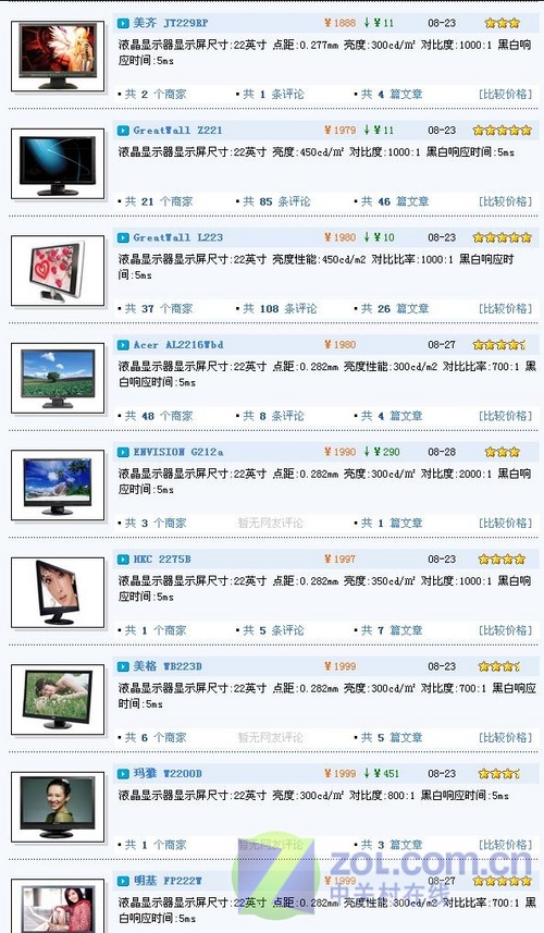 从中关村在线产品库了解到目前22英寸已经有多大10款产品将价格下探到了2000元内,与20英寸LCD遥相呼应,价格差距在200元以内,整体性价比异常出色。