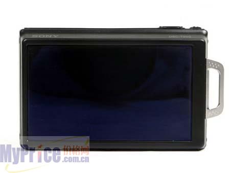 在索尼T200的机身背面配备了一块3.5英寸16:9宽屏TFT LCD液晶屏,有效像素依然是23万。采用触摸式的操作方式,因此在屏幕周围并没有设定其它的按键。