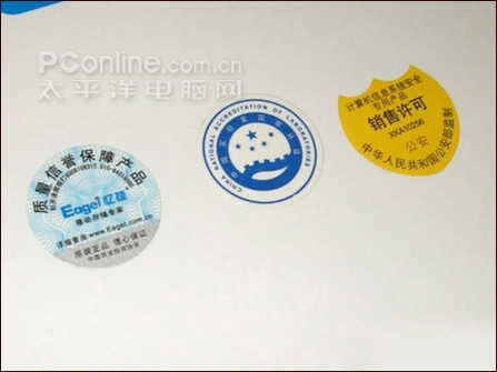 外包装的认证标志:通过“中国实验室国家认证”、“中国质量检验协会”、“计算机信息系统安全专用产品销售许可”等检验认证,用户还可以通过防伪标签来辨别产品真伪,很好保证了消费者的合法权利。