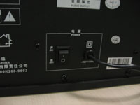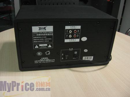 电源开关、低音调节以及音箱的接口集中在音箱背部,分列规矩,并且详细的标明了输入及输出端口,让人一目了然,设计的十分人性化。