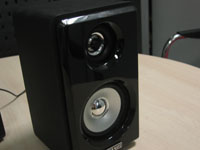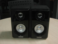两只卫星箱的造型与低音炮基本没有太大区别,只是在形状上与横向发展的主箱略有不同。