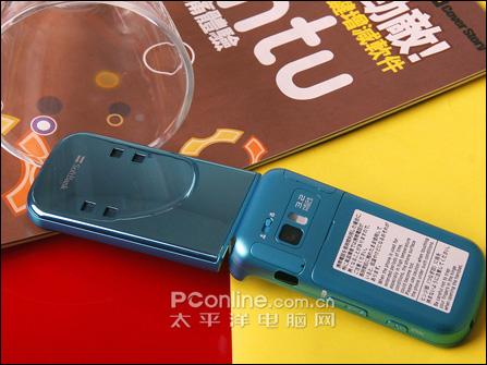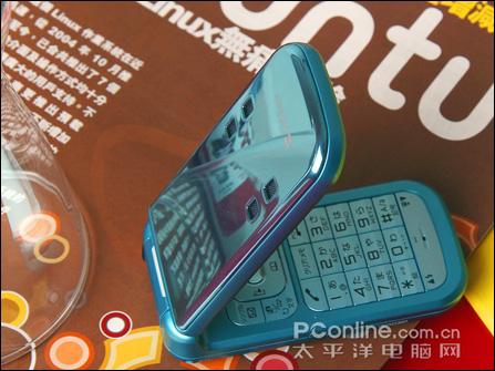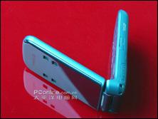 轻轻翻开,可以感到转轴的力度控制得很好,813T并非采用完全的半自动设计,45度到135度之间,上盖可以静止,与之前推出的810T/811T一样,也是日系手机的特点(NEC、松下转轴也如此)。由于力度控制得恰到好处,所以813T开翻时感觉很安全,卡位非常到位,不过开翻过程依旧有轻微的塑胶摩擦声音,感觉机身结构不是非常紧凑,也许是考虑到手机的外壳的抗震性吧,过硬的部件咬合机身反而难以抗击的碰撞。813T三围尺寸为97×49×20mm,机身边缘过渡圆滑,与手掌很贴合,113克的重量加上炫目的“镜子”,813T的用户可以挂于胸前。