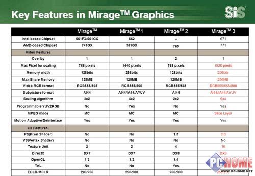 这次Mirage3显示核心较前几代来说主要还是体现在支持DX9上