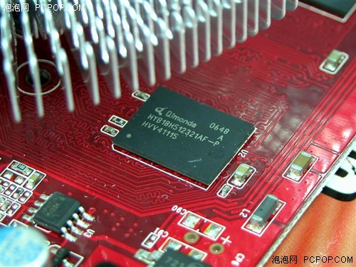 显存方面,火旋风PCX2628 PRO采用了1.4ns GDDR3显存颗粒,正面4颗组成256M/128bit显存规格。默认频率为600/1200MHz,由于1.4ns GDDR3的理论运行频率可以达到1400Mhz以上,加上催化剂7.8已经开放官方超频功能,这款显卡还有很大的超频空间。