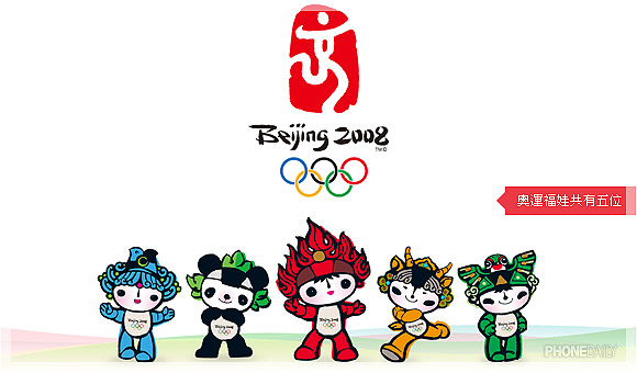 其实 2008 北京奥运的吉祥物「福娃」一共有五个,分别是蓝色的「福娃贝贝」、黄色的「福娃迎迎」、绿色的「福娃妮妮」、熊猫造型的「福娃晶晶」,以及今天的主角:火红色的「福娃欢欢」。虽然目前我们只能找到以欢欢为主题的手机,但既然有五个福娃,推出以其它福娃为主题的手机也是很合理的。此外,若是有读者对这些福娃的设计概念有兴趣,《北京奥运网站》有详细资料可供查阅