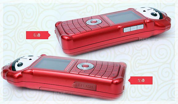 翻到背面来看,一路红到底的配色,加上火焰般的不规则头部造型,让福娃手机的背面看起来就像是一把熊熊燃烧的火炬。