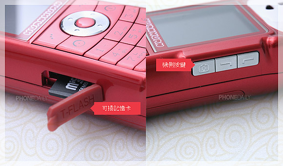福娃手机除了屏幕上方的大头之外,其它地方的造型就没有比较特别的地方,机身两侧按键也不多,音量键、快门键都在手机右侧。