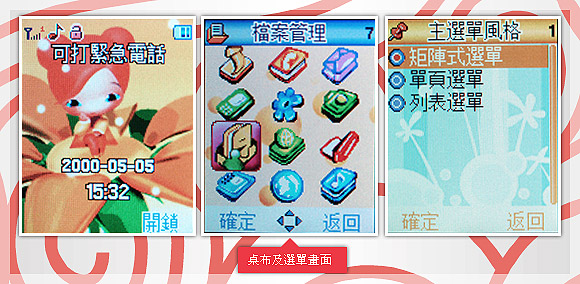 手机尺寸小,屏幕当然大不了。福娃手机的屏幕尺寸小于 1.5 ?,画素和分辨率不明,字体也很小,眼睛不好的人绝对看得很吃力。也许是为了显示功能丰富,选单采用 12 宫格接口,但密密麻麻的小图示真令人眼花撩乱。