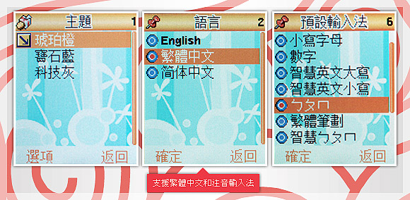 福娃手机支持繁体中文显示,也内建注音输入法,只不过键盘上完全没有注音符号,输入文字时只能自行摸索。