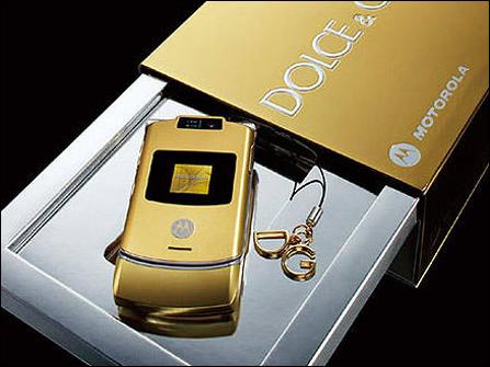 尽管手机与时尚品牌联姻推出特别限量版已不是什么新鲜的创意,西门子、诺基亚等品牌都有过成功的先例。黄金版V3i是摩托罗拉与意大利著名时装品牌Dolce&Gabbana(杜嘉.班纳)以RAZR V3i为基础,在英国伦敦携手推出限量销售的顶级豪华手机,全球仅发行1000部。