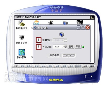 旅行者1.8T的十五合一包括:无驱、PC锁、常用文件夹操作、压缩功能、文件加密、通讯录、随身QQ、自动邮件登陆、我的搜索引擎、爱眼小护士、记事小秘书、伊人伴侣、定时关机等,下面我们将为大家介绍。