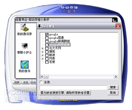 移动储存小助手在旅行者1.8T中,有网络搜索功能,按需要自主设置搜索引擎,如百度、googole等来进行网络搜索。在个人电脑中,也许有功能更强大的软件进行网络搜索,但是如果在外上网搜索资料的时候,旅行者1.8T的网络搜索功能为你提供各种便利。