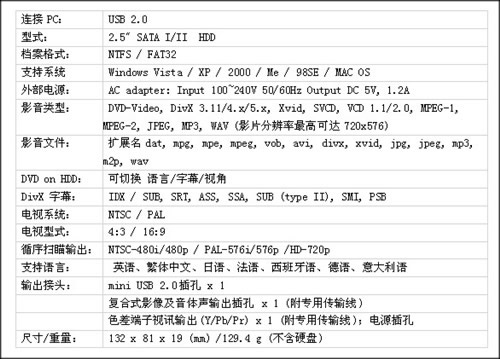 HV256T仅19 的厚度再加上129.4g(不含硬盘)的重量足以媲美一部手机,方便用户旅行时携带。此外HV256T影像大师搭载了独特的DVD on HDD播放功能,可直接播放DVD数据夹。用户可随意切换语言,字幕及视角。优群 HV256T配备了最强的DivX字幕功能,支持绝大多数的字幕档格式。此外,支持Windows及Mac计算机系统,跨平台传输最便利。