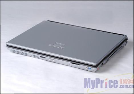 接口设计:机身前侧的接口包括红外窗口、无线网卡开关和六合一读卡器,这个六合一读卡器兼容SD、SD Pro、MMC、MS、MS Pro、xD六种存储卡,另外需要说明的是,机身前侧的红外窗口是专门供F31配备的遥控器使用的。机身左侧的接口包括MODEM接口、VGA接口、网卡接口、2个USB2.0接口、IEEE 1394接口和ExpressCard插槽。机身右侧的接口包括耳机/MIC接口、USB2.0接口、吸入式RAMBO光驱、电源接口和锁孔。