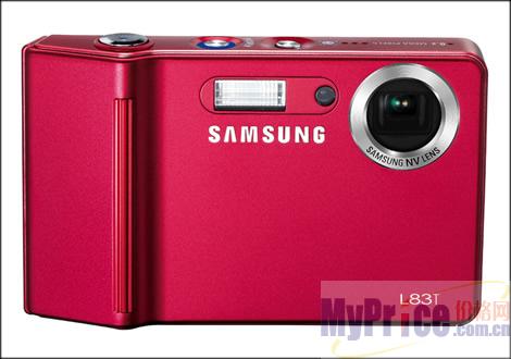 三星蓝调L83T使用1/2.5英寸800万有效像素CCD,使用等效焦距为38-114mm,最大光圈为F35.-4.5的3倍光学变焦镜头。三星蓝调L83T的快门速度为1-1/2000秒(夜景模式15-1/2000秒)。三星L83T使用2.5英寸大小23万像素的液晶显示屏。该机使用SD卡作为存储介质,机身自带19MB内存,采用锂离子电池供电。