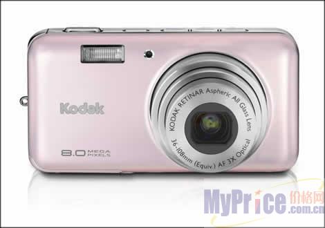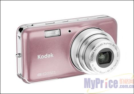 柯达V803亮点不多,高感光功能算是一个,但柯达为V803配备的都是主流配置,800万像素,2.5英寸LCD,时尚的机身设计,多种机身色彩的选择,加上其不俗的高性价比都为V803增添竞争力。