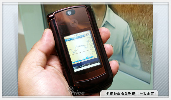 由香港传来的消息。MOTO HK可能发现港人钱市热络、全民皆疯股的情况,特地设计了实时看盘软件,最了不起是连外屏幕都可以支持,手机不开盖,一样掌握个股行情,搭配 3.5G 网络,V9 想必是上班族最低调又方便的看盘工具了吧!