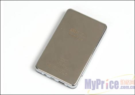 魅族miniplayer SP背面为激光雕刻的魅族厂商英文标识,产品型号,内存容量与产品信息等。另外,由于机身背面为抛光镀铬工艺,所以硬度比一般金属要高,能够起到抗震的作用,耐磨性也更强一些。同时,光亮程度用来当镜子都毫无问题。