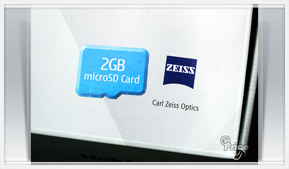 另一方面,在N82的外盒包装上,有一个大大的「Carl Zeiss Optics」图示,代表N82仍然采用卡尔蔡司光学镜头;旁边可能是让你最高兴的讯息了:N82随机附赠2GB的microSD卡,很有诚意。