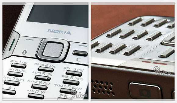 手机正面采用银色金属烤漆,表面看起来很光滑,也有反射光线的效果,但是有好必有坏,面板除了极容易沾油污指纹之外,它也很容易刮伤。不过N82出厂的时候,屏幕与下面键盘的地方都贴上了保护贴,而且贴得还不错,如果不想花钱作手机包膜的话,建议不用把上面的保护贴撕掉,要不然就是要为它找个皮套保护了。