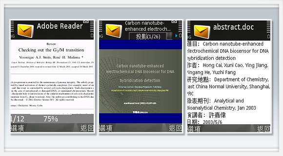 N82 采用 Symbian S60 第三版操作系统,因此内建的应用程序十分多。在办公室应用部份,手机内建 Quickoffice,可以浏览 Word、Excel 与 PowerPoint 档案;另外也可以利用 Adobe Reader 浏览 PDF 文件。
